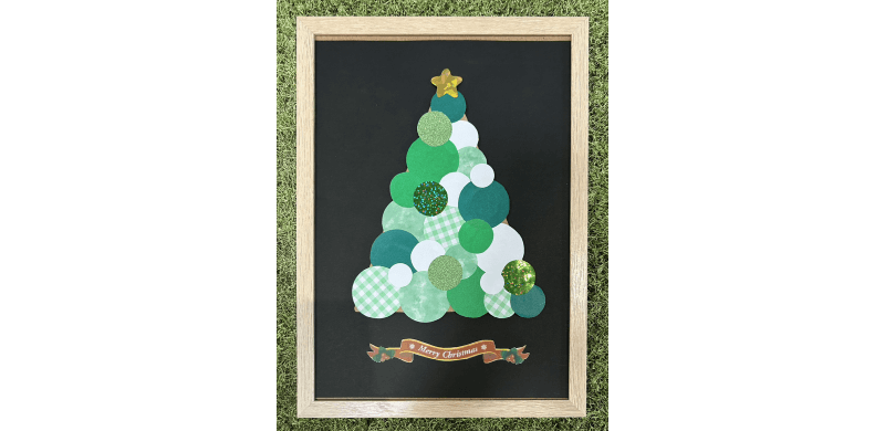 三角の厚紙に様々な大きさの丸を貼って、台紙に貼り付けて完成です✨
