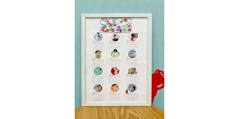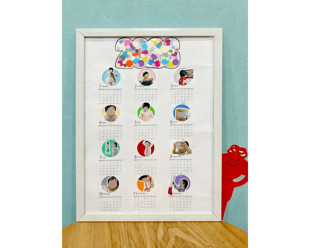★丸にくりぬかれた台紙に12か月分のお子様のお写真を貼ったり、書き込みをしていただいたりと、デザインは自由です♪