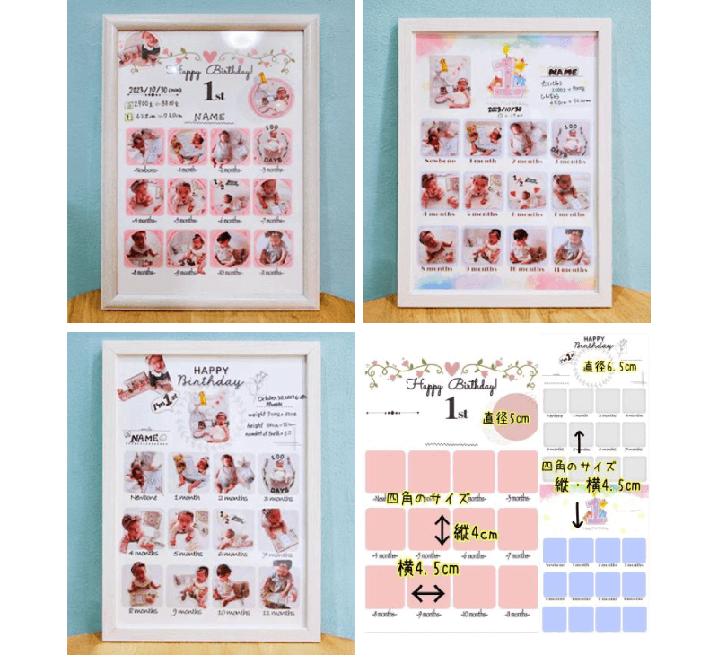 - ★台紙にお名前・体重身長を書いていただいたり、お子様のお写真を貼ったりデザインは自由です。