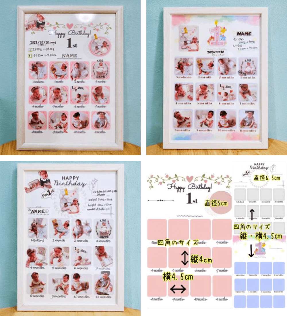 ★台紙にお名前・月齢を書いていただいたり、お子様のお写真を貼ったり、デザインは自由です。