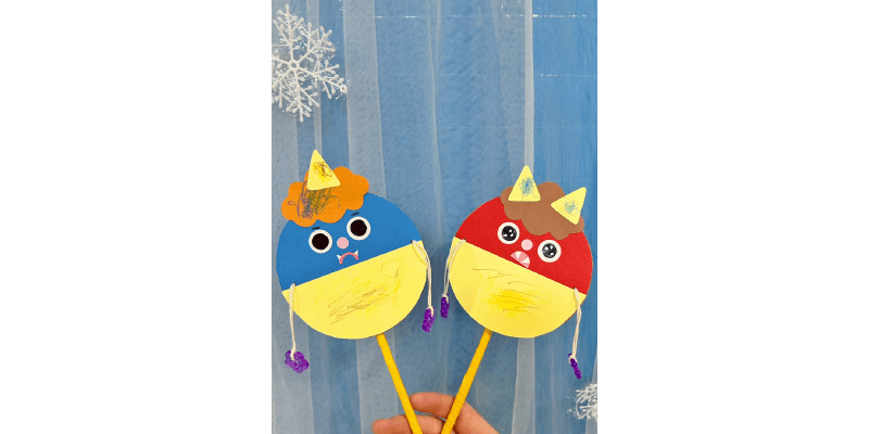 - ★鬼のでんでん太鼓を製作します。お色は、当日「2種類」からお選びいただけます!