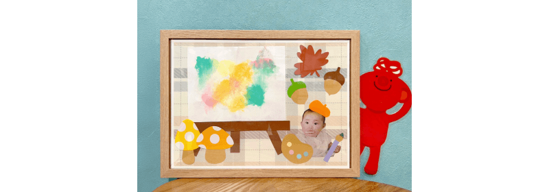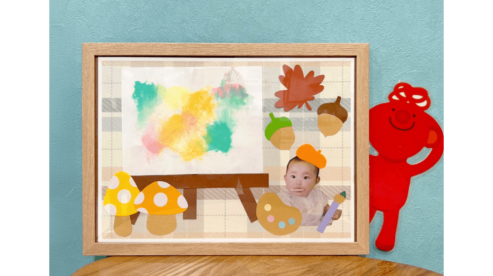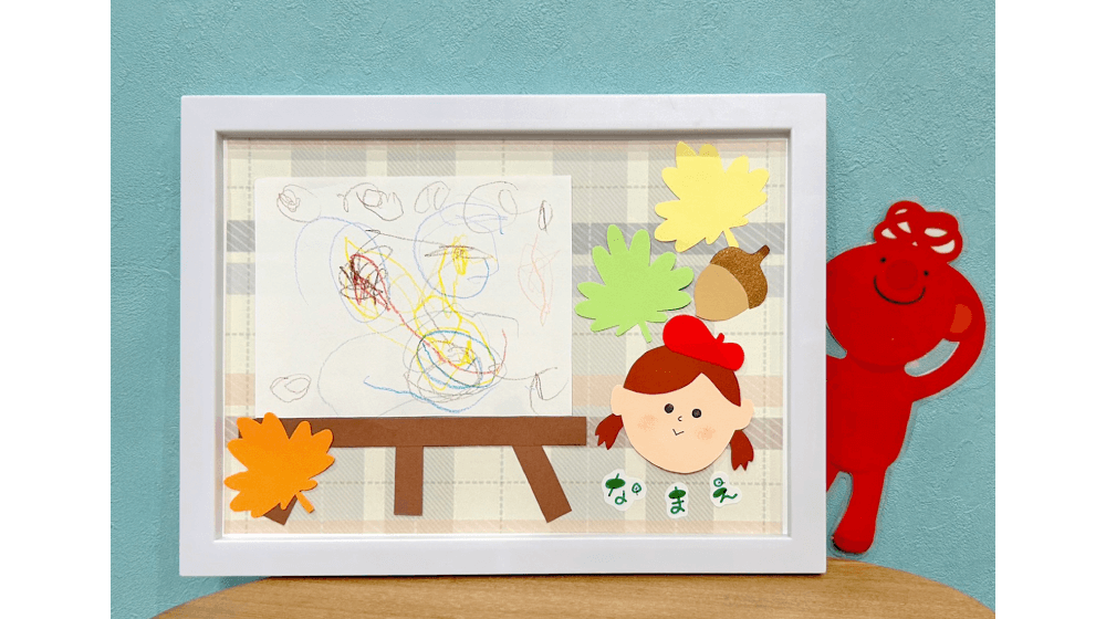 完成したお絵描きの作品を台紙に貼ったり台紙をデコレーションしたらアートの完成です!