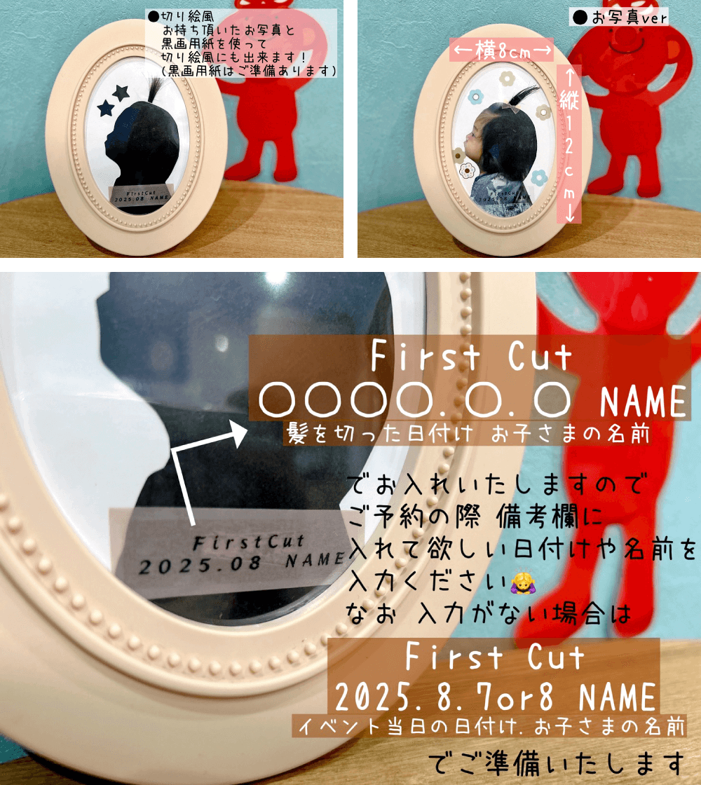 ★印字してほしい日付(髪を切った日)などがありましたら、ご予約の際に備考欄にご入力いただければ、お入れいたします♡