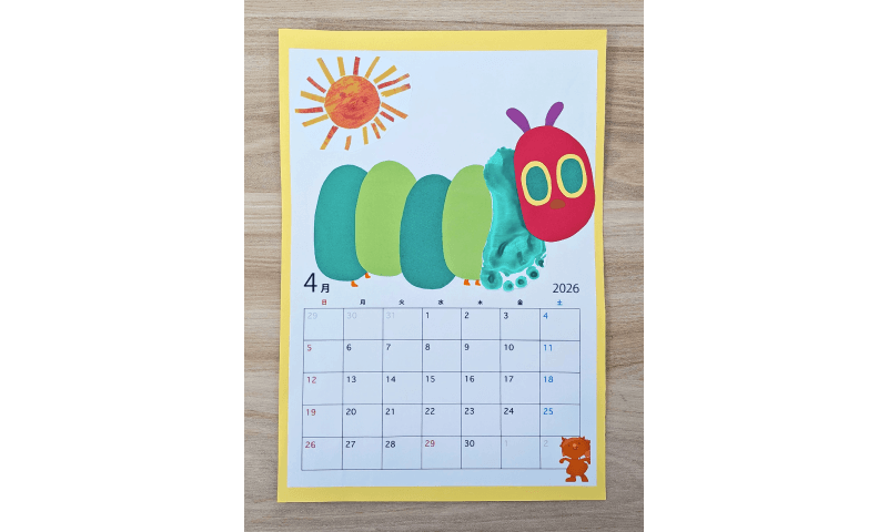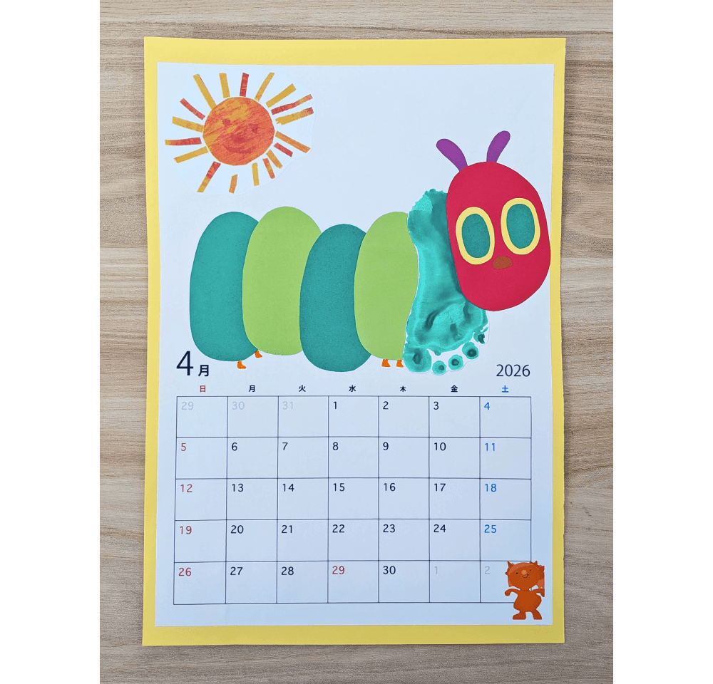 ★お子様の足型を使って「はらぺこあおむし」を作り、春らしいカレンダーになります!