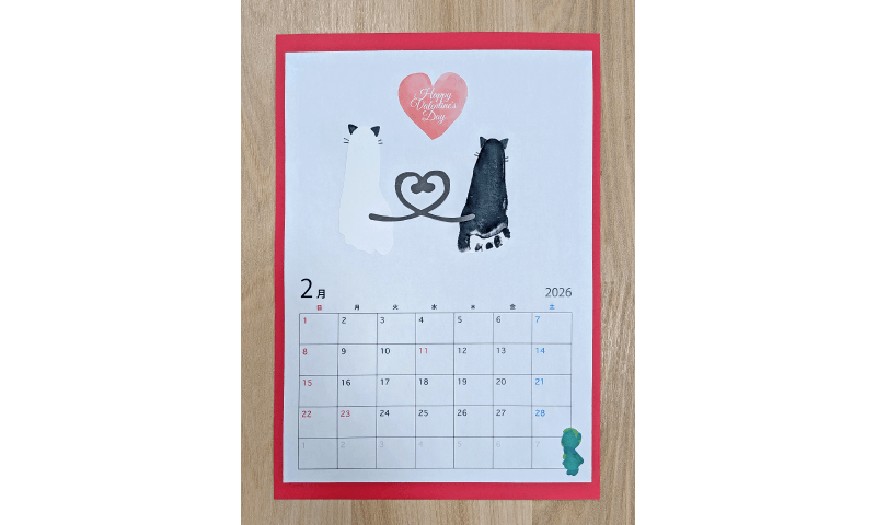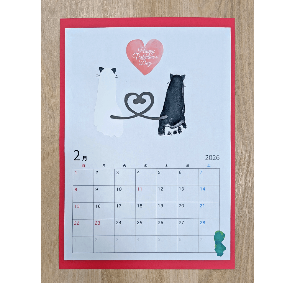 足型で「猫ちゃん」を作ります。2匹の仲良しな猫ちゃんが並んだ、シンプルなカレンダーになります🐈
