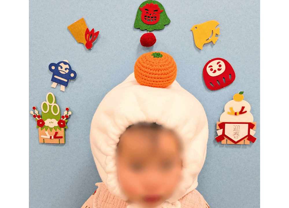 - ★フェルトでできた帽子をかぶって、「鏡餅」に変身しましょう♫