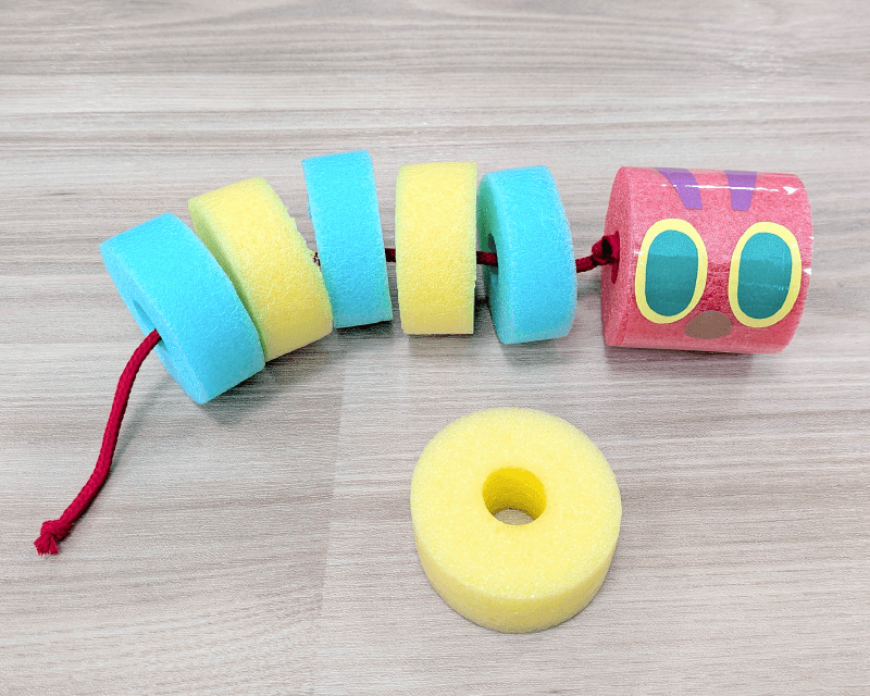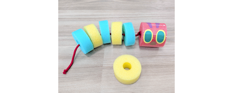 ★プールスティックを使って、あおむしの紐通しの製作も行います!